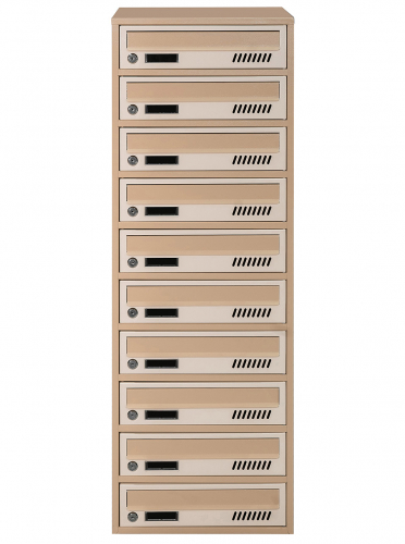 Поштовий ящик LEVMETAL багатосекціний Е2-10.А у бежевому кольорі (RAL 1001/1015) із 10 прямих секцій - ідеальний вибір для вашого багатоквартирного будинку.