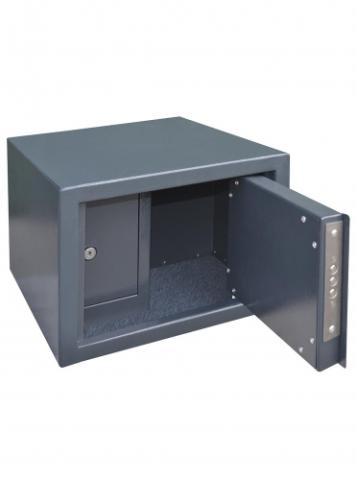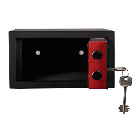 Сейф виготовлений з металу товщиною 1,0 мм та 1,5 мм, з загальною вагою 2,6 кг. Розмір: 115x215x215 мм.