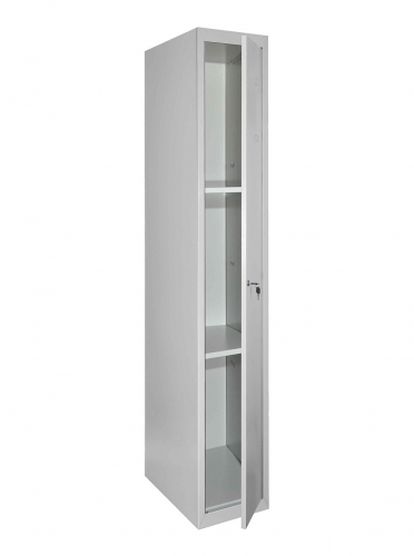 Матеріал: Метал, Покриття: Полімерно-порошкове, Конструкція: Збірно-розбірна, Товщина металу 0.5 мм, Тип шафи: Господарський (ШГМ), Кількість секцій: 1, Кількість дверей у секції: 1, Кількість відділень: 3 з можливістю регулювання висоти полиць