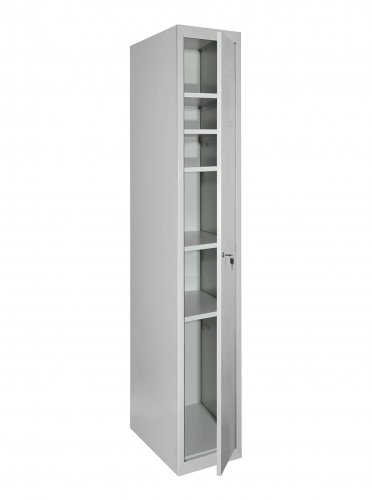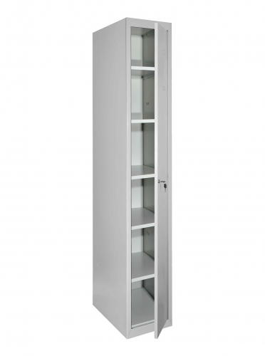 Матеріал: Метал, Покриття: Полімерно-порошкове, Конструкція: Збірно-розбірна, Товщина металу 0.5 мм, Тип шафи: Господарський (ШГМ), Кількість секцій: 1, Кількість дверей у секції: 1, Кількість відділень: 6 з можливістю регулювання висоти полиць