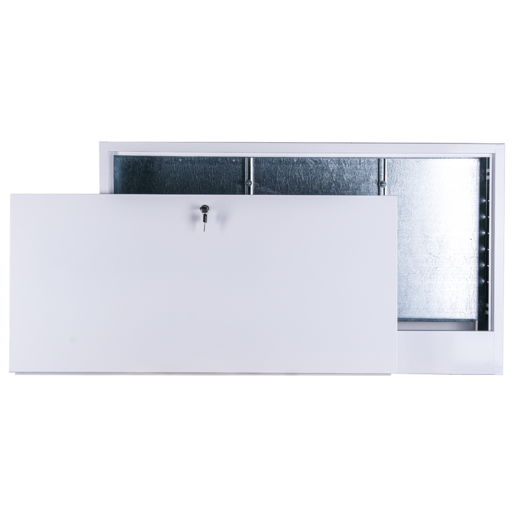 Вбудовані шафи мають передню панель, яка може бути забарвлена, тоді як задня монтажна рама зазвичай оцинкована для захисту від корозії.