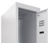 Кожна секція шафи обладнана 4 гачками для легкого підвішування одягу, перекладеною для вішаків, а також поличкою для зручного розміщення речей. Крім того, кожна секція оснащена врізним механічним замком типу прапорця з двома ключами для забезпечення максимальної безпеки зберігання. Таким чином, шафи одягові металеві є надійним та функціональним рішенням для організації зберігання одягу у будь-якому приміщенні.