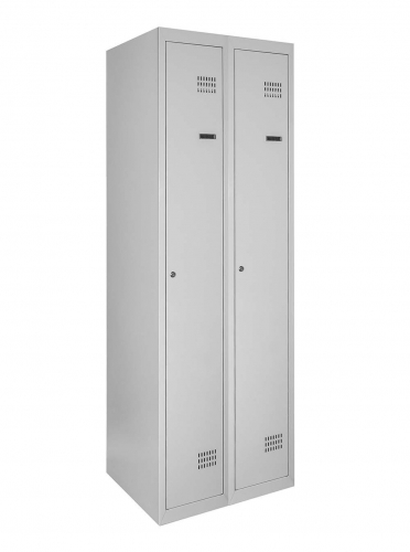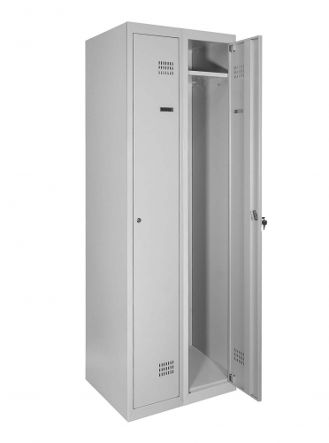 Кожна секція шафи обладнана 4 гачками для легкого підвішування одягу, перекладеною для вішаків, а також поличкою для зручного розміщення речей. Крім того, кожна секція оснащена врізним механічним замком типу прапорця з двома ключами для забезпечення максимальної безпеки зберігання. Таким чином, шафи одягові металеві є надійним та функціональним рішенням для організації зберігання одягу у будь-якому приміщенні.