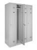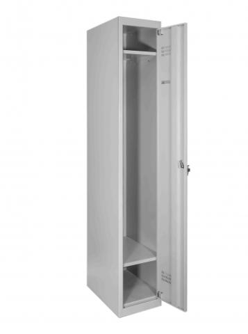 Кожна секція шафи обладнана 4 гачками для легкого підвішування одягу, перекладеною для вішаків, а також поличкою для зручного розміщення речей. Крім того, кожна секція оснащена врізним механічним замком типу прапорця з двома ключами для забезпечення максимальної безпеки зберігання. Таким чином, шафи одягові металеві є надійним та функціональним рішенням для організації зберігання одягу у будь-якому приміщенні.