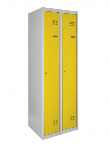 Кожна секція шафи обладнана 4 гачками для легкого підвішування одягу, перекладеною для вішаків, а також поличкою для зручного розміщення речей. Крім того, кожна секція оснащена врізним механічним замком типу прапорця з двома ключами для забезпечення максимальної безпеки зберігання. Таким чином, шафи одягові металеві є надійним та функціональним рішенням для організації зберігання одягу у будь-якому приміщенні.