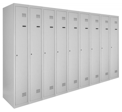 Кожна секція шафи обладнана 4 гачками для легкого підвішування одягу, перекладеною для вішаків, а також поличкою для зручного розміщення речей. Крім того, кожна секція оснащена врізним механічним замком типу прапорця з двома ключами для забезпечення максимальної безпеки зберігання. Таким чином, шафи одягові металеві є надійним та функціональним рішенням для організації зберігання одягу у будь-якому приміщенні.
