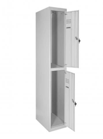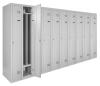 Кожна секція шафи обладнана 4 гачками для легкого підвішування одягу, перекладеною для вішаків, а також поличкою для зручного розміщення речей. Крім того, кожна секція оснащена врізним механічним замком типу прапорця з двома ключами для забезпечення максимальної безпеки зберігання. Таким чином, шафи одягові металеві є надійним та функціональним рішенням для організації зберігання одягу у будь-якому приміщенні.