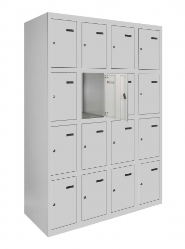 Універсальність конструкції дозволяє зручно складувати шафи в будь-якому приміщенні, а можливість їхнього з'єднання у вигляді блоків робить їх ідеальним варіантом для організації простору будь-якого розміру. Кожна секція шафи оснащена врізним механічним замком з двома ключами для забезпечення надійності та конфіденційності зберігання.
