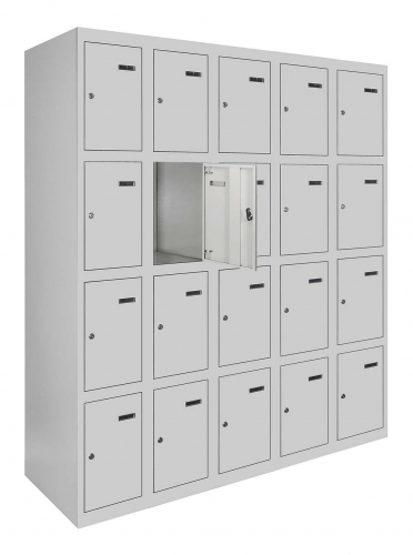 Універсальність конструкції дозволяє зручно складувати шафи в будь-якому приміщенні, а можливість їхнього з'єднання у вигляді блоків робить їх ідеальним варіантом для організації простору будь-якого розміру. Кожна секція шафи оснащена врізним механічним замком з двома ключами для забезпечення надійності та конфіденційності зберігання.
