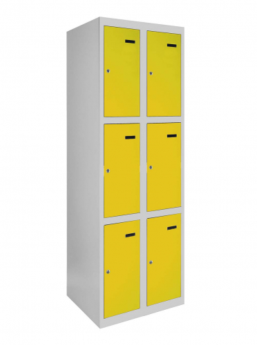 Універсальність конструкції дозволяє зручно складувати шафи в будь-якому приміщенні, а можливість їхнього з'єднання у вигляді блоків робить їх ідеальним варіантом для організації простору будь-якого розміру. Кожна секція шафи оснащена врізним механічним замком з двома ключами для забезпечення надійності та конфіденційності зберігання.
