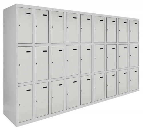 Універсальність конструкції дозволяє зручно складувати шафи в будь-якому приміщенні, а можливість їхнього з'єднання у вигляді блоків робить їх ідеальним варіантом для організації простору будь-якого розміру. Кожна секція шафи оснащена врізним механічним замком з двома ключами для забезпечення надійності та конфіденційності зберігання.